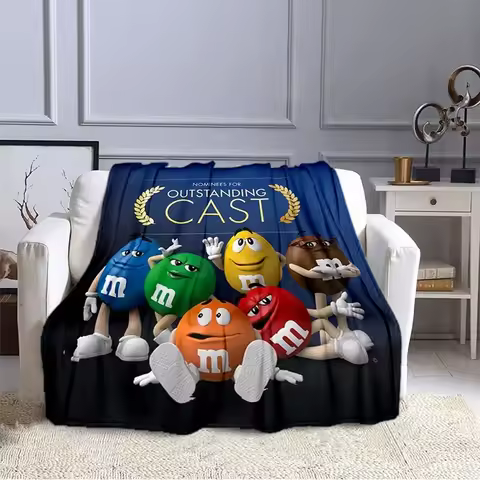 M&M Bean Chocolate Cartoon Printed Plush Blanket, Fashionable, Warm, Hiking, Home, Sofa, Bedding, Children's Bed Blanket Gift