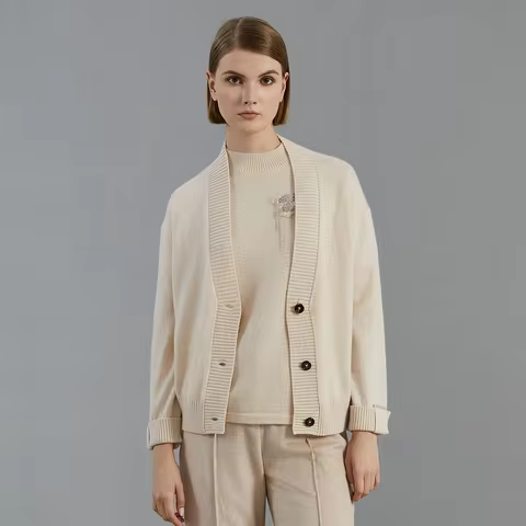 Women 100% Merino Wool Cardigan Soft O-Neck Cashmere Sweater OL Buttoned Knitwear Casual Top Clothing Korean Style