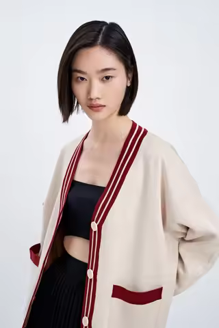 V-neck Sweater Coat Women's Autumn and Winter Fashion Knitted Cardigan Casual Button Long-sleeved Top