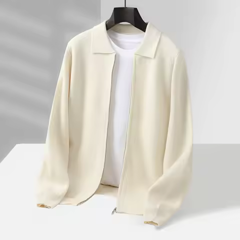 Men 100% Merino Wool Stand-Up Collar Cardigan Casual Knit Business Zipper Coat Autumn Winter Versatile Warm Men Cashmere Jacket
